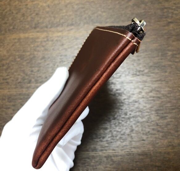 サイズがスリムなのでポケットに収まり、L字ファスナーなので開閉しやすいです。